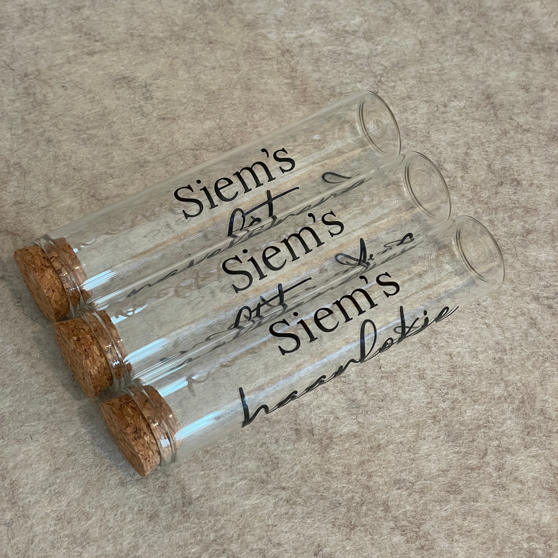 Wil je liever een andere tekst op de buisjes? Laat het weten in de opmerkingen bij je bestelling.