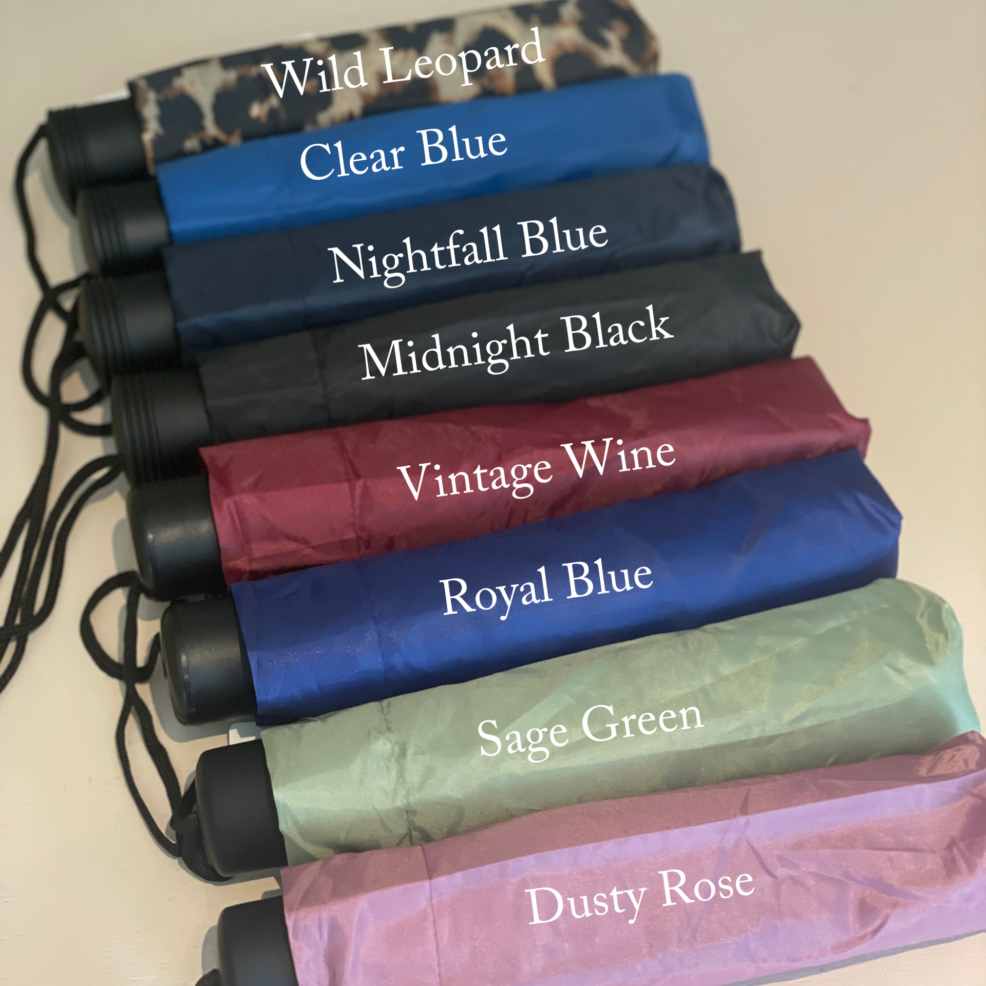 Zoek je een cadeautje dat zowel persoonlijk als praktisch is? Deze opvouwbare paraplu’s zijn verkrijgbaar in verschillende leuke kleuren en bedruk ik met een naam of korte tekst naar keuze. De bedrukking is altijd in het wit, wat zorgt voor een fris en duidelijk contrast op elke kleur paraplu.